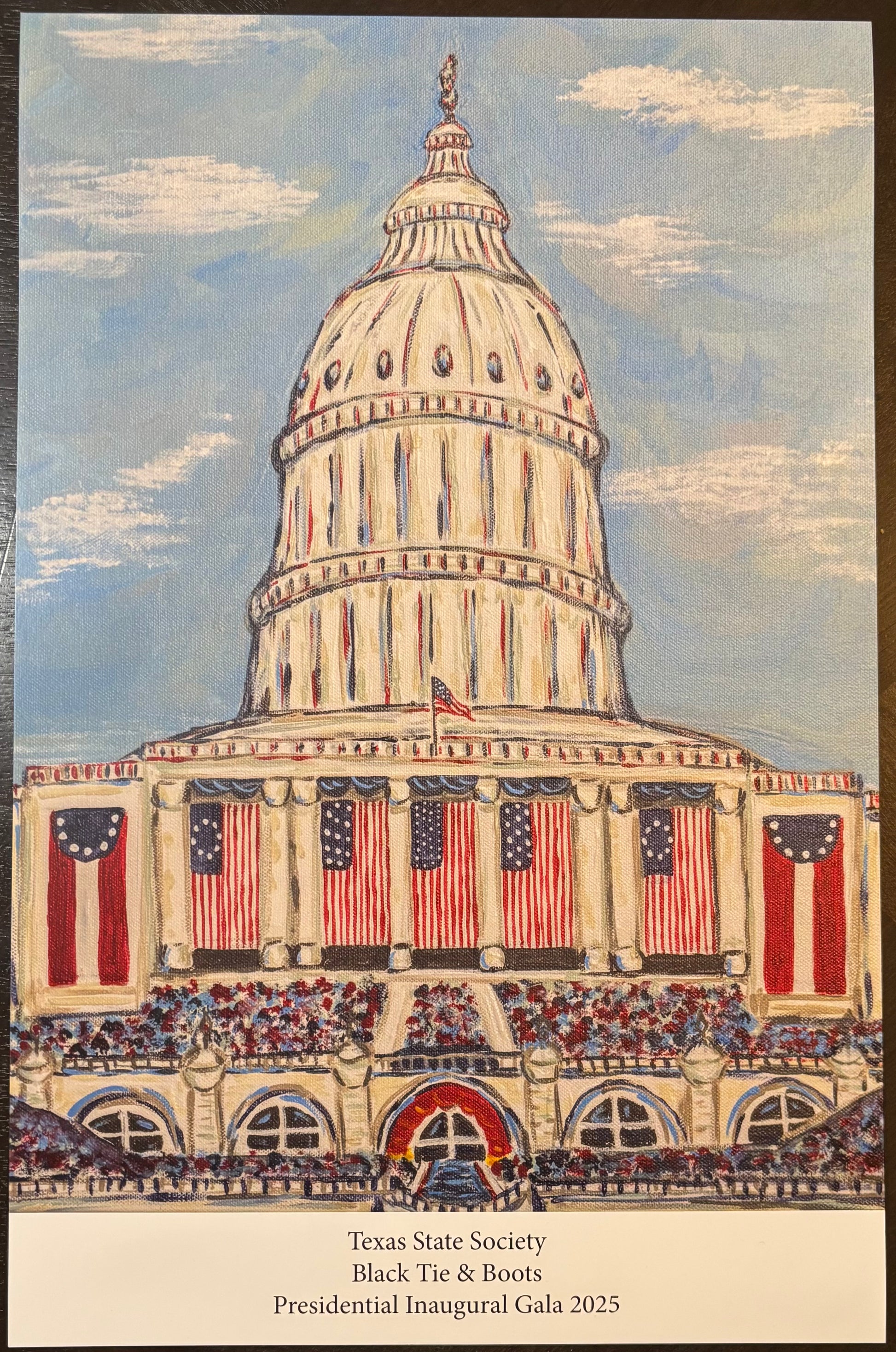 Own a piece of history with this exclusive signed and numbered print from the iconic Black Tie and Boots Inaugural Ball. Created by renowned artist Catherine Maxwell, this stylish and sophisticated piece from @catmaxart is the perfect addition to any collection. Don't miss your chance to own this limited edition print.